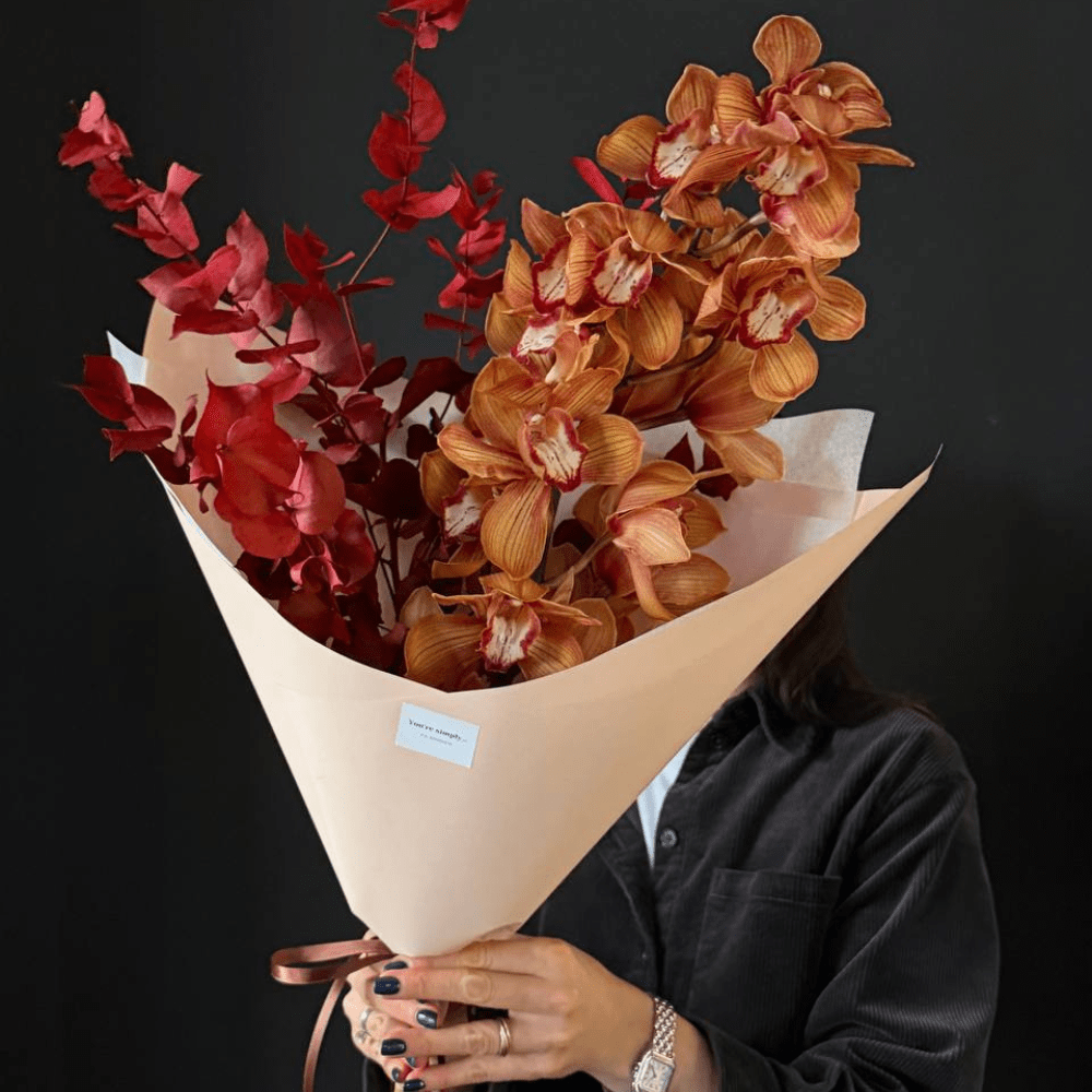 Букет из орхидеи и стабилизированного эвкалипта