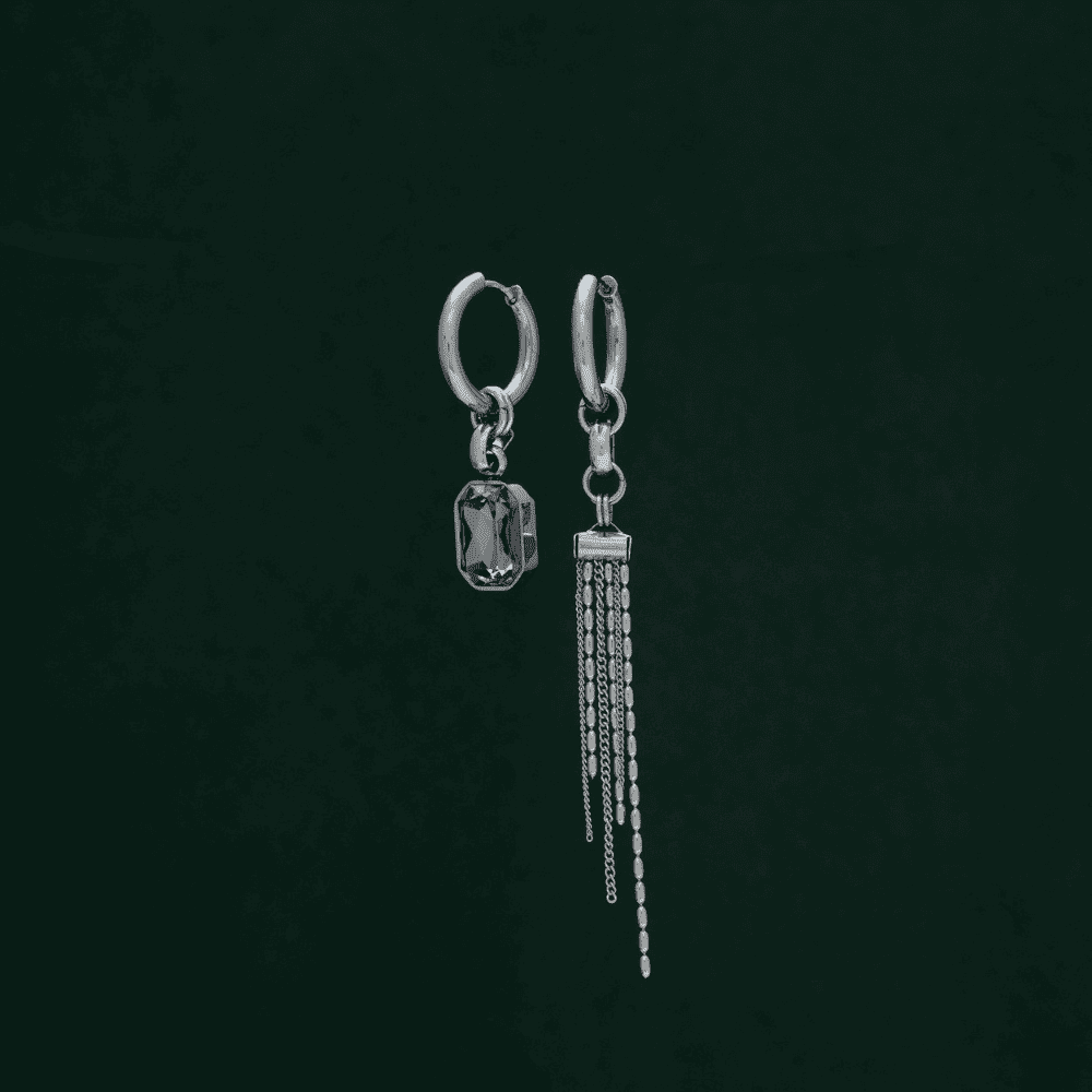 Серьги зорка кристалл ассиметрия с цепочками KARAVAI